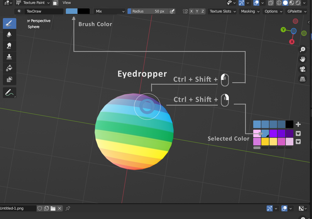 Shift+ Ctrl - LMB - Eyedropper for brush color